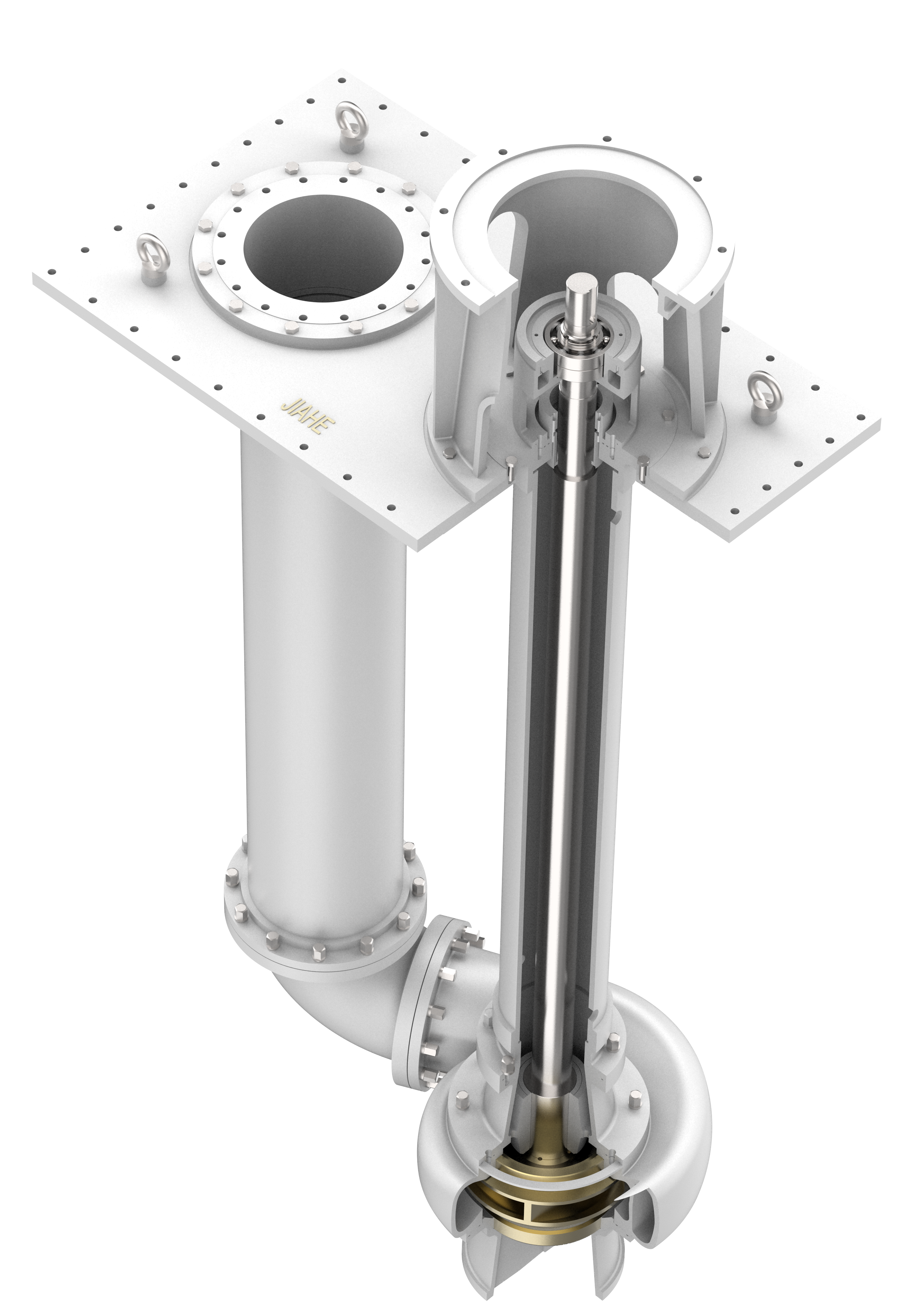 JHG系列泵是單級(jí)、單吸、軸向吸入徑向剖分液下離心泵,符合ISO13709/API610-11th標(biāo)準(zhǔn)。該系列泵液下深度可達(dá)3.6米,采用雙支撐結(jié)構(gòu),液上采用兩列角接觸球軸承,承受軸向載荷,液下設(shè)有一對(duì)或兩對(duì)滑動(dòng)軸承(即軸套、襯套),承受徑向載荷,過流部件選用優(yōu)質(zhì)耐高溫硫酸腐蝕的高溫不銹鋼材料。
