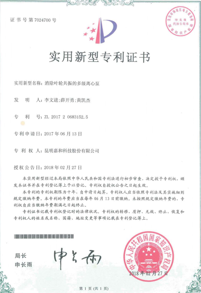 消除葉輪共振的多級(jí)離心泵