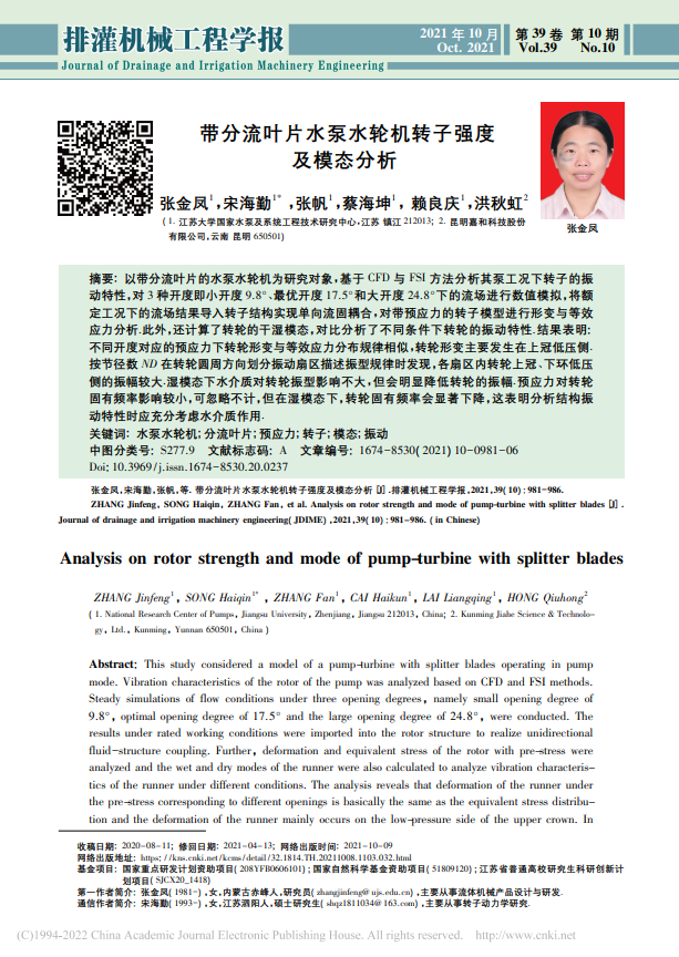 帶分流葉片水泵水輪機(jī)轉(zhuǎn)子強(qiáng)度及模態(tài)分析