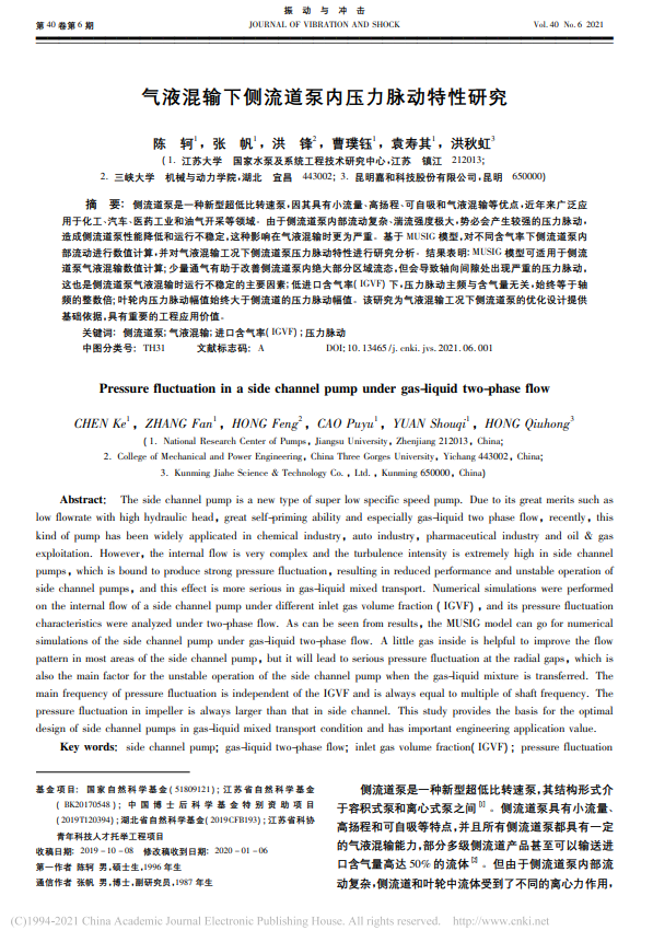 氣液混輸下側(cè)流道泵內(nèi)壓力脈動(dòng)特性研究