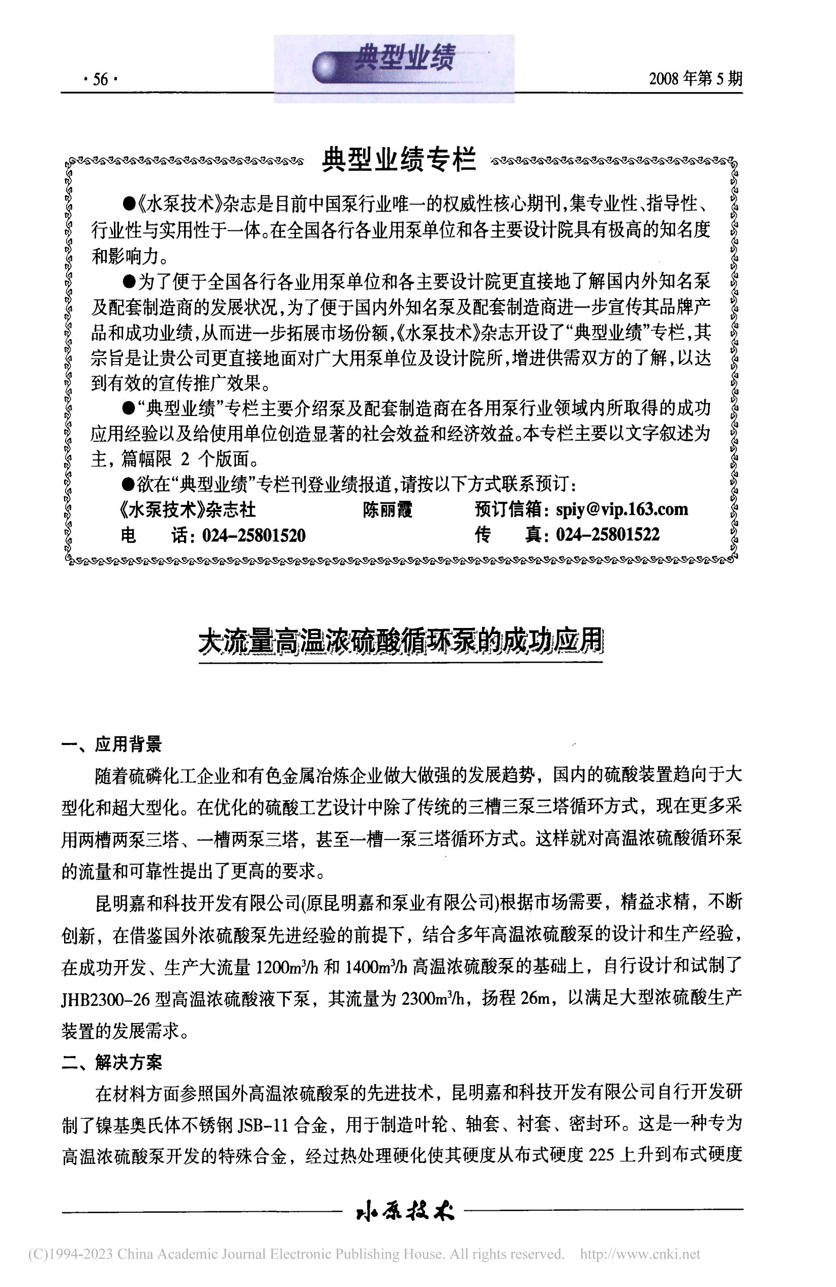 大流量高溫濃硫酸循環(huán)泵的成功應(yīng)用
