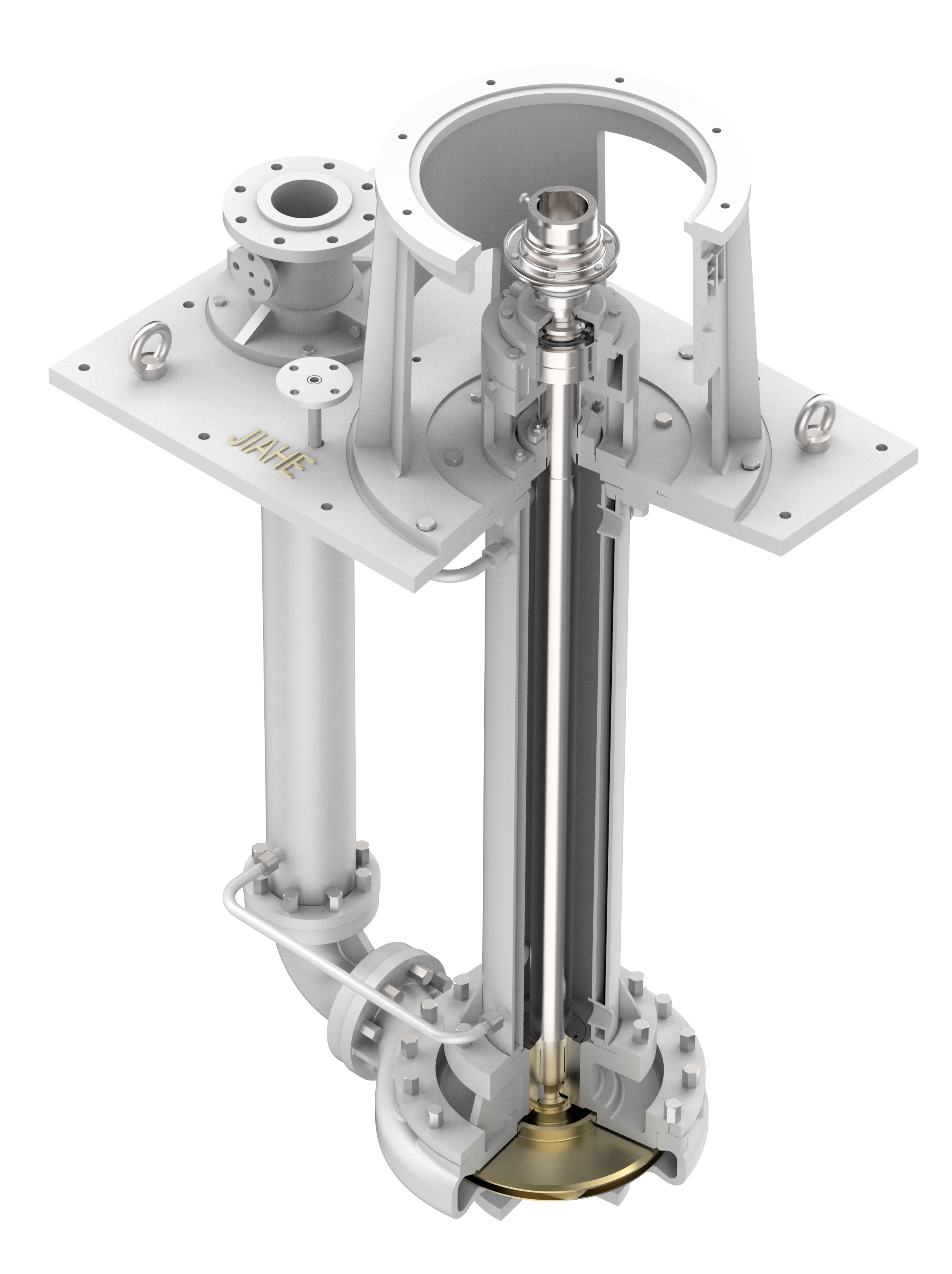 JHL系列泵為單級(jí)、單吸液下離心泵,符合 ISO13709/API610 標(biāo)準(zhǔn)。采用雙支撐結(jié)構(gòu),液上采用兩列角接觸球軸承,承受軸向載荷,液下設(shè)有一對(duì)或多對(duì)滑動(dòng)軸承(即軸套、襯套),承受徑向載荷。觸液接管部件、出液管部件均采用蒸汽夾套設(shè)計(jì),過流部件選用優(yōu)質(zhì)耐高溫腐蝕的材料,具有通過能力強(qiáng),運(yùn)轉(zhuǎn)穩(wěn)定及壽命長優(yōu)點(diǎn) 。
